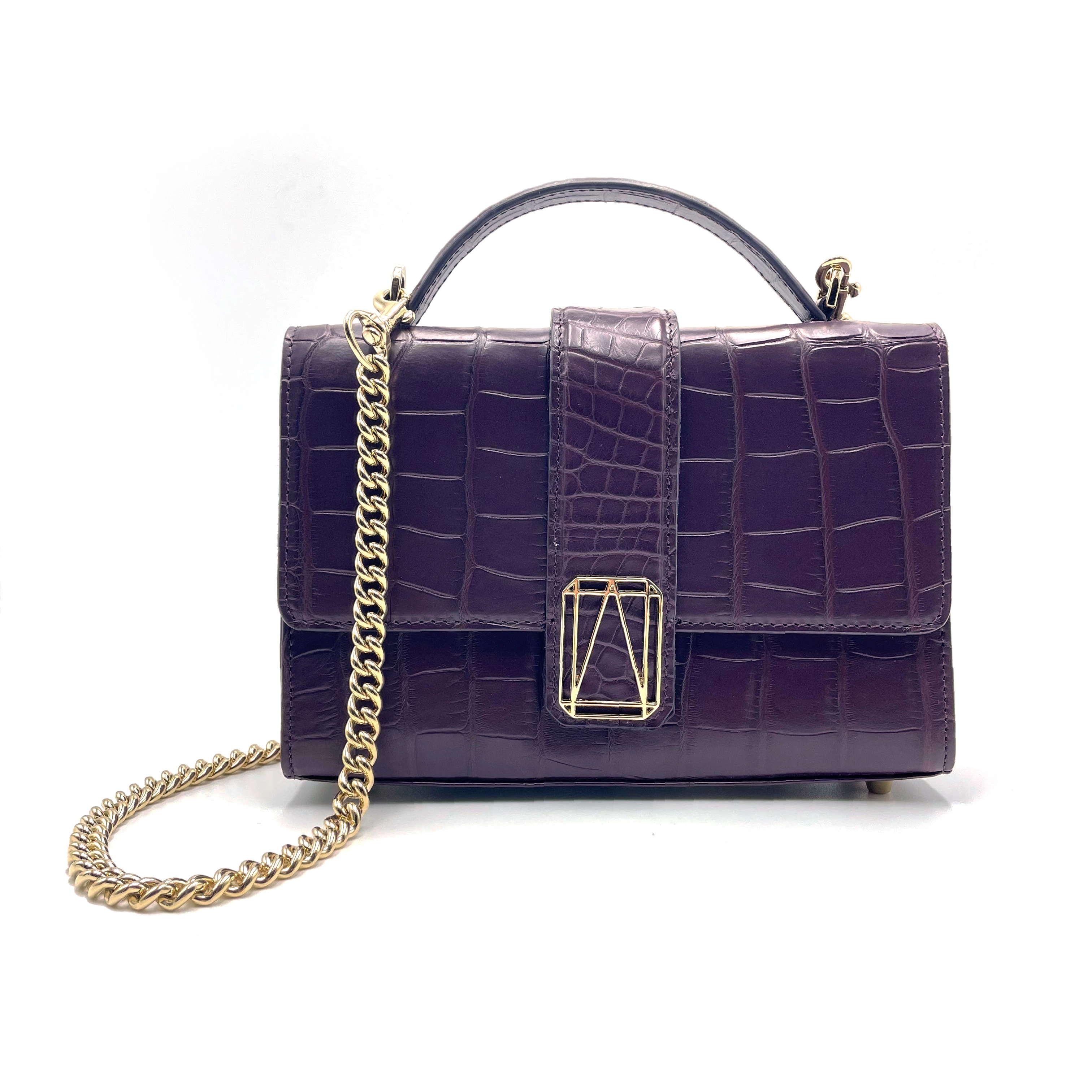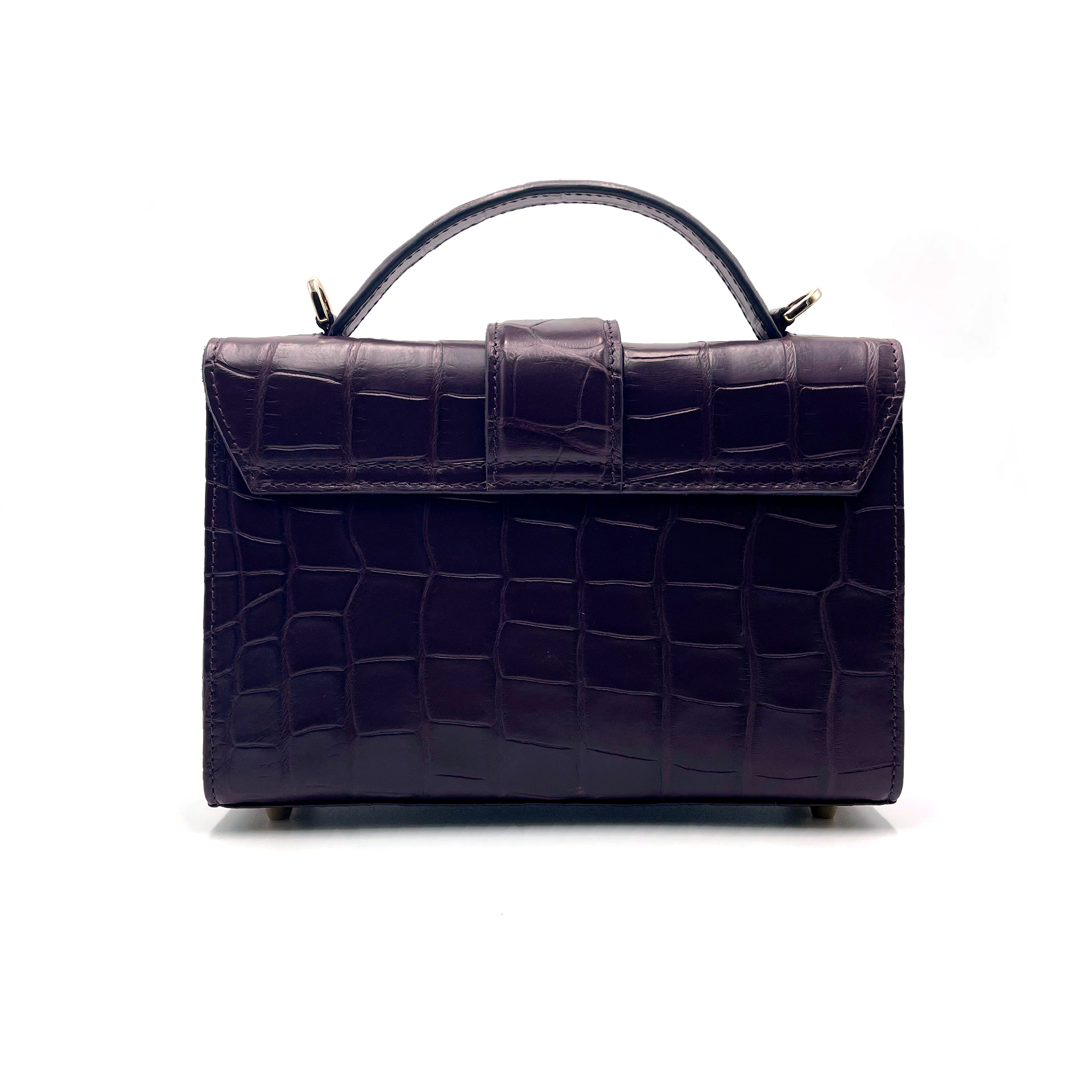 Our statement handbag, with strong body and powerful personality. Handcrafted to perfection in exotic alligator silk leather and lining in tone on tone premium alcantara.