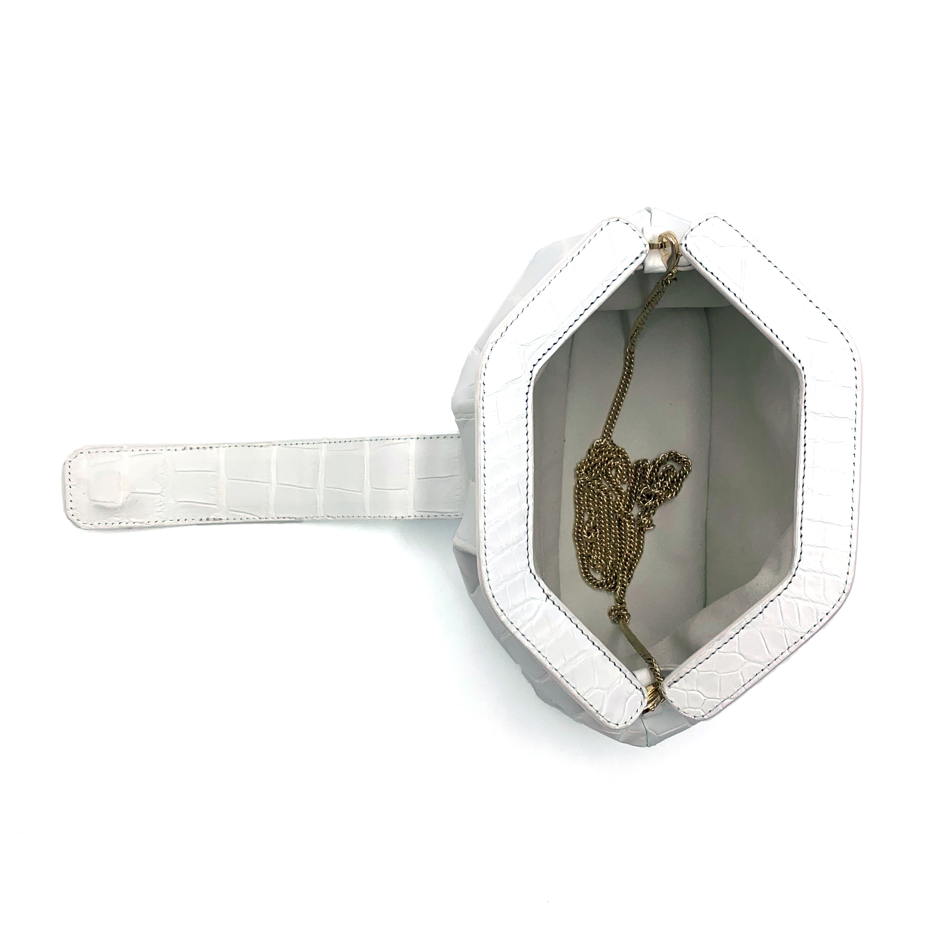 Fluffy mini handbag, handcrafted to perfection in exotic alligator silk leather and lining in tone on tone premium alcantara.